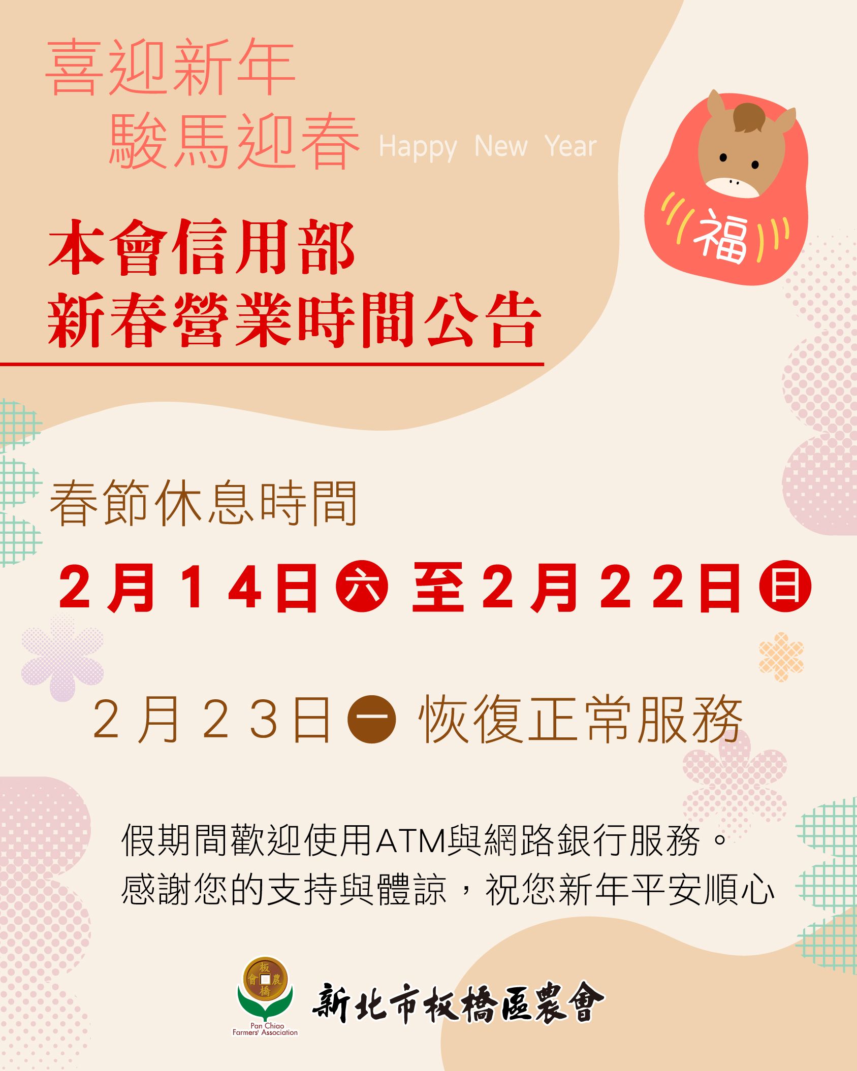 本會創立於民國七年一月三十一日,設立名稱為「有限責任板橋信用組合」,因社會環境變遷,歷經數次更名,至民國六十一年板橋鎮升格縣轄市後,即定名為「板橋市農會」,配合本市改制(原臺北縣改制為新北市),於民國一百年四月一日正式更名為「新北市板橋區農會」。